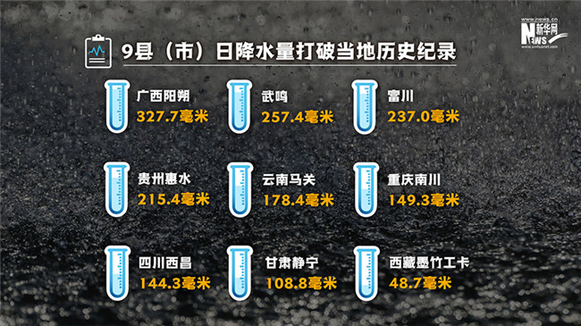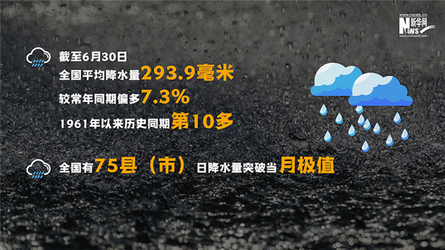 入汛以來,全國有75縣(市)日降水量突破當月極值,有9縣(市)日降水量打破當?shù)貧v史紀錄。