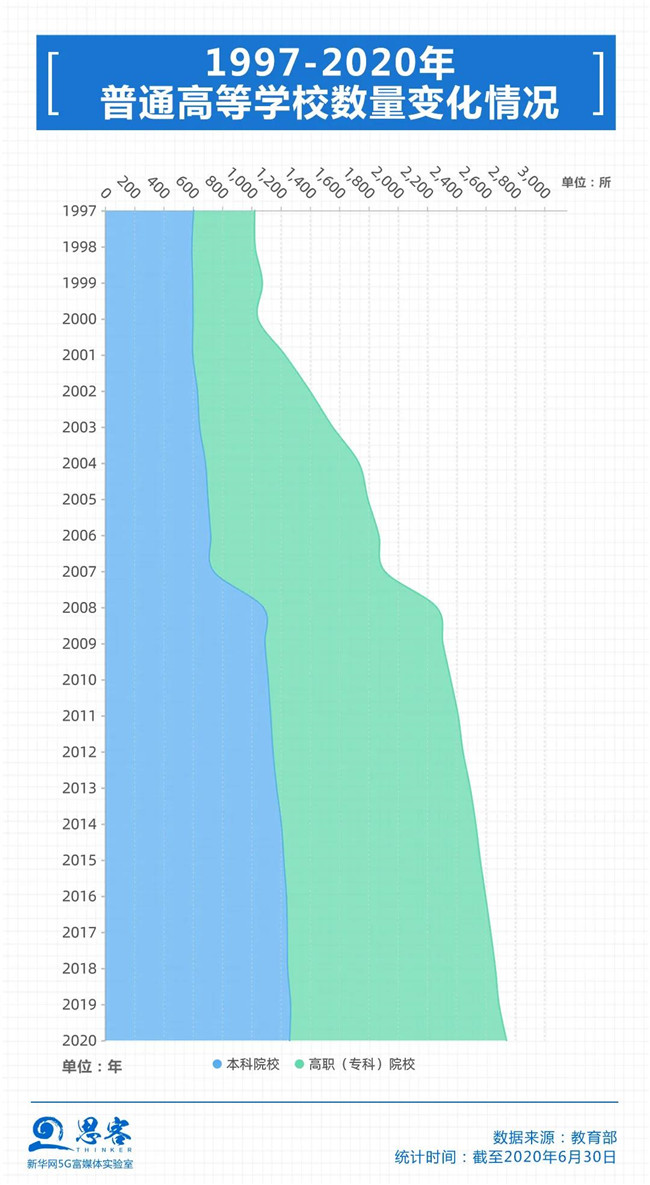 截至2020年6月30日,全國有普通高等學(xué)校2740所,含本科院校1258所、高職(??疲┰盒?482所。2000多所高校是怎樣分布的呢?