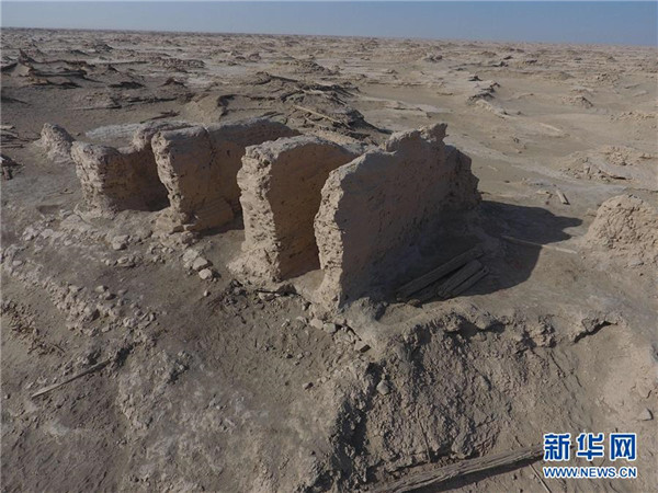 這是樓蘭古城三間房遺址(2019年11月14日攝,無人機照片)。新華社發(fā)(中鐵西北科學研究院有限公司提供)