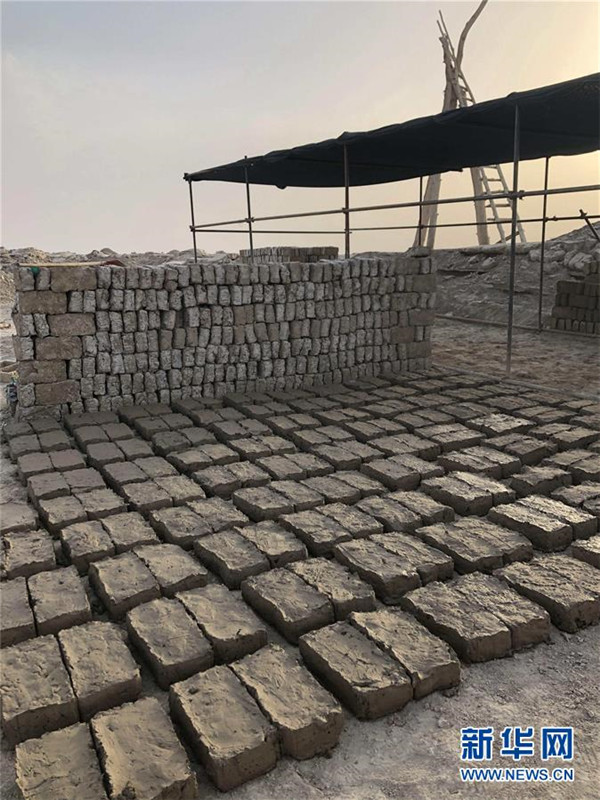 工作人員選取樓蘭古城外圍的土料制備土坯(7月1日攝)。新華社發(fā)(中鐵西北科學研究院有限公司提供)