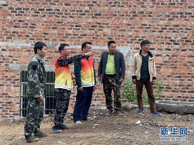廣西田林縣八渡瑤族鄉(xiāng)六林村駐村第一書記牟海迪(左二)與村干部一起籌劃村里道路建設(shè)(2020年4月24日攝)。 新華社記者 林凡詩 攝