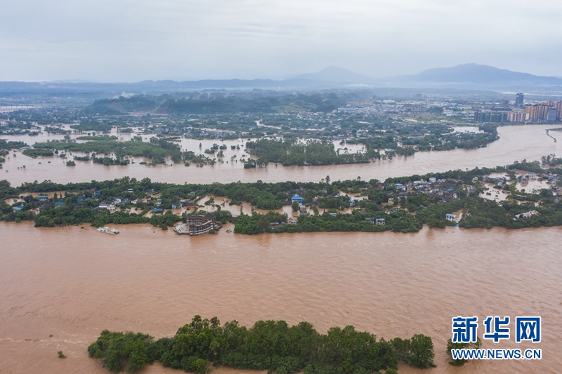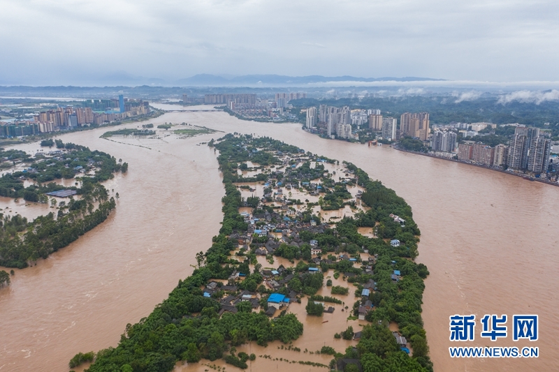 洪水中的樂(lè)山市區(qū)。