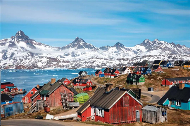 ▲圖為丹麥格陵蘭島一小鎮(zhèn)的港口景色。丹麥氣象局發(fā)布的數(shù)據(jù)顯示,2019年7月格陵蘭島冰蓋融化量是常年的4倍多