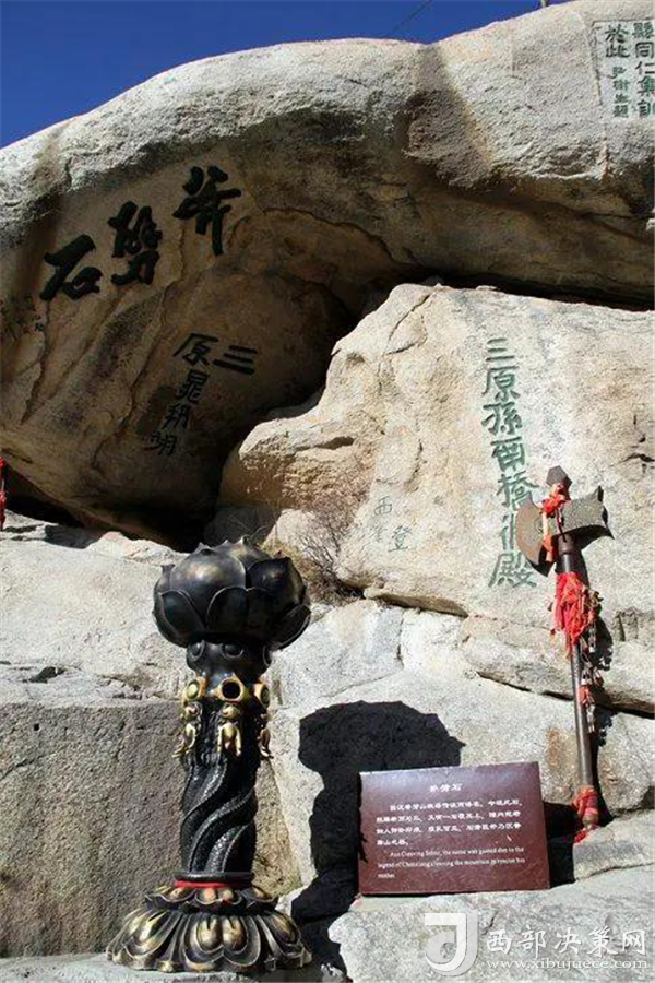 來到北峰,不可不提的自然是華山論劍了,在峰頂有一塊石牌,上面是金庸先生親筆題寫的“華山論劍”,此處也成為游客登臨華山必到之處。