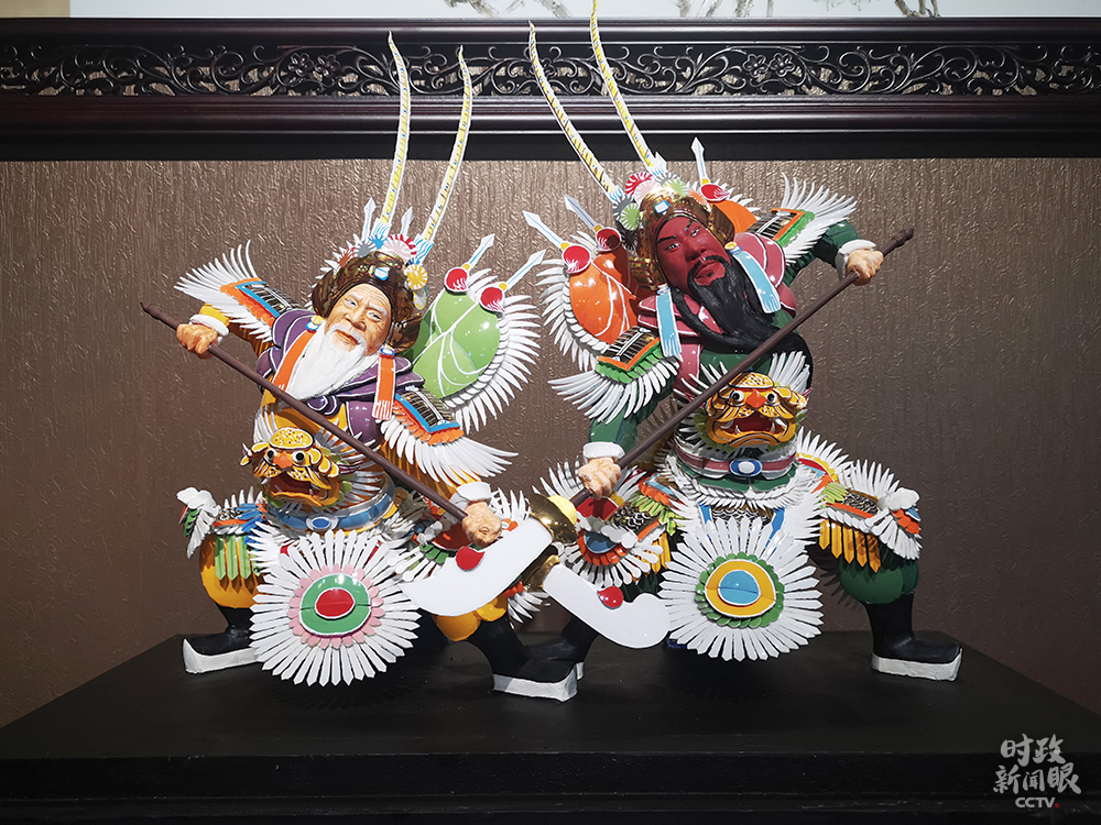 △這是潮州嵌瓷《關(guān)公戰(zhàn)黃忠》。(總臺央視記者張曉鵬拍攝)