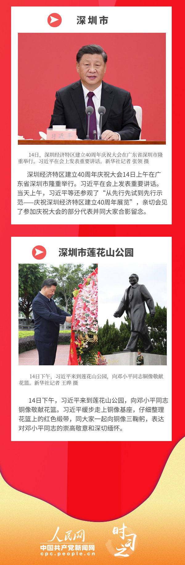 10月12日至13日,中共中央總書(shū)記、國(guó)家主席、中央軍委主席習(xí)近平先后來(lái)到廣東潮州、汕頭進(jìn)行調(diào)研。14日,習(xí)近平出席深圳經(jīng)濟(jì)特區(qū)建立40周年慶祝大會(huì)并發(fā)表重要講話。