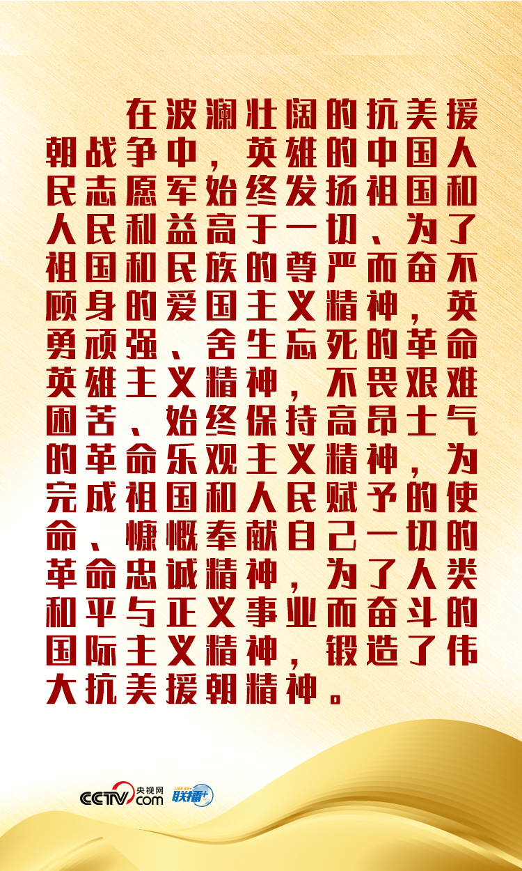 央視網(wǎng)《聯(lián)播+》欄目為您梳理總書(shū)記講話要點(diǎn),與您一起銘記歷史,砥礪初心,大力弘揚(yáng)抗美援朝精神。