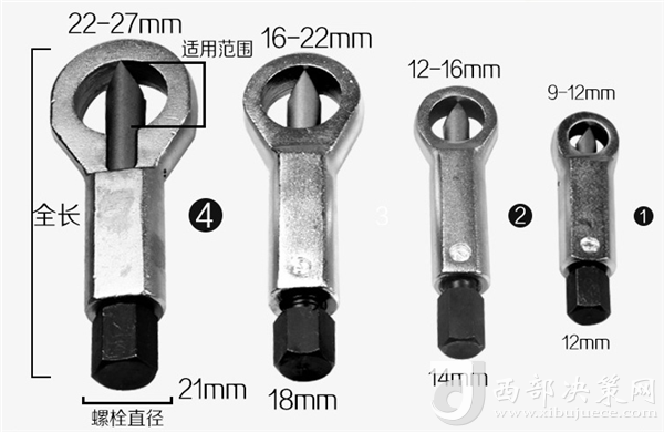 據(jù)井下工人反饋,該工具使用方法非常簡單,只需選擇孔徑合適的螺母分離器套在銹死的螺母上,然后用扳手夾禁尾部六方頭,順時針旋轉六角轉頭,使得尖刀頭切入螺母內(nèi),這時就解決了滑絲的問題,可以拆卸螺母,如果還是拆不下來,則繼續(xù)旋轉轉頭,直接把螺母切斷。