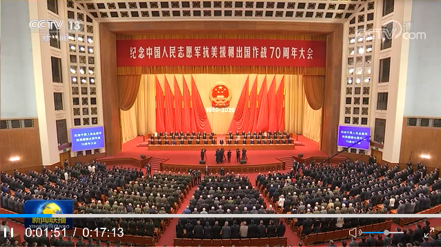 紀(jì)念中國人民志愿軍抗美援朝出國作戰(zhàn)70周年大會在京隆重舉行 習(xí)近平發(fā)表重要講話