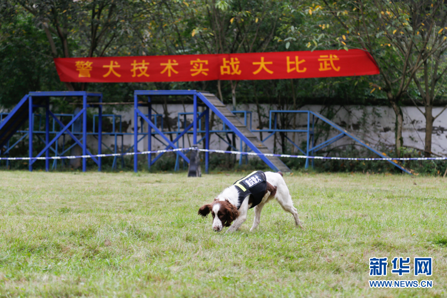 警犬正在草地上搜索。新華網(wǎng)發(fā)(耿駿宇 攝)