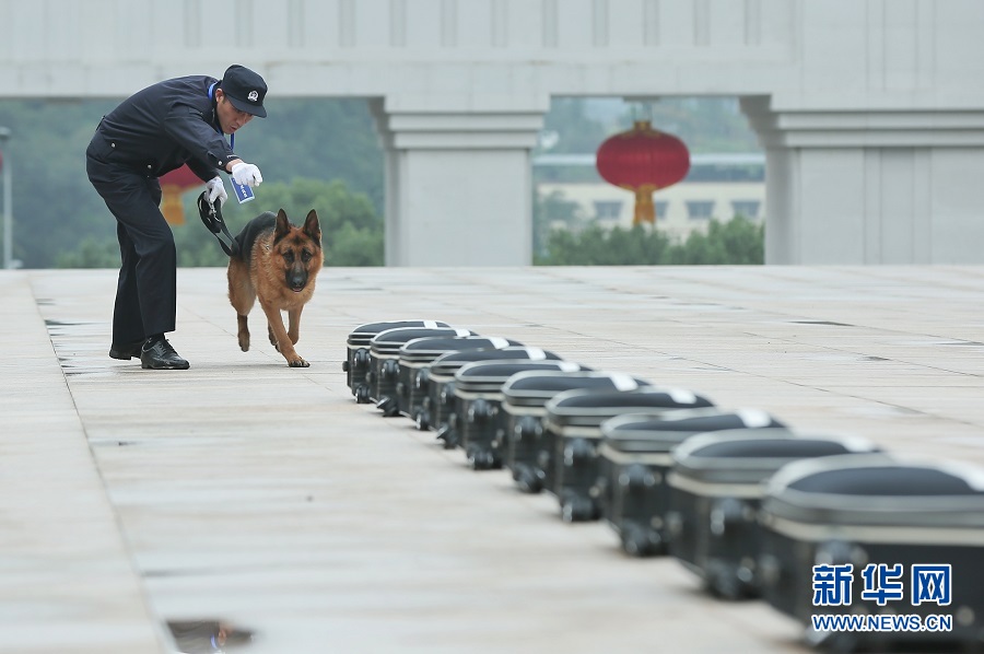 箱包搜爆項(xiàng)目中,警犬正在搜尋。新華網(wǎng)發(fā)