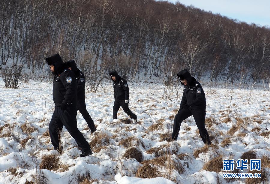 11月27日,克什克騰旗森林公安民警在黃崗梁國家森林公園內,解除盜獵分子下的鋼絲套,消除野生動物安全隱患。新華社發(fā)(王志國 攝)