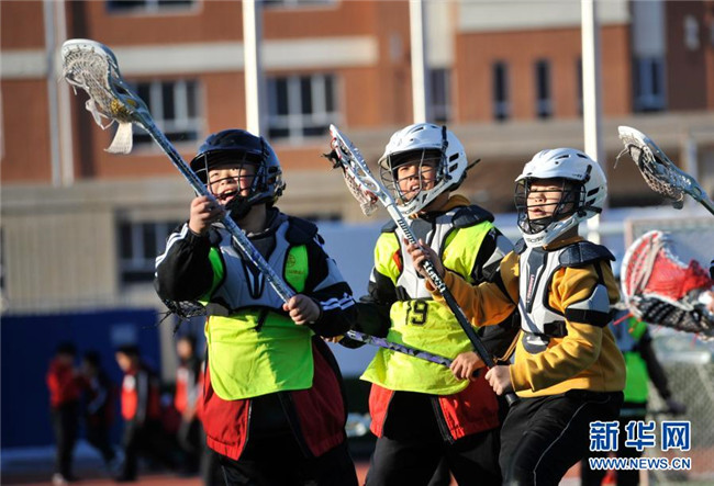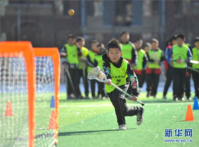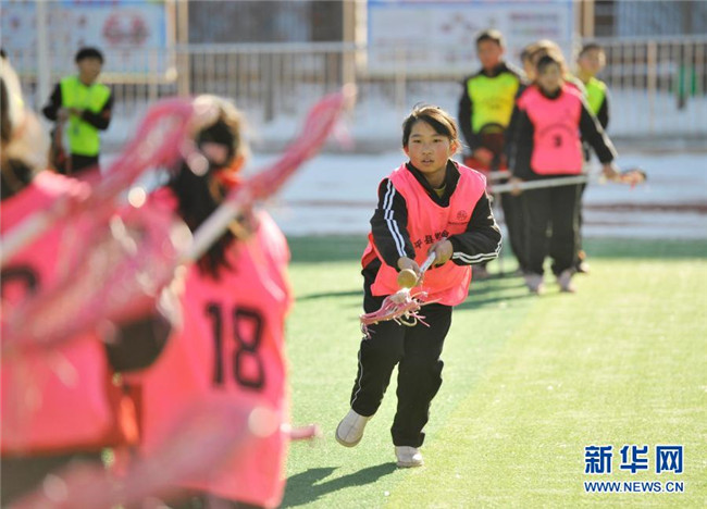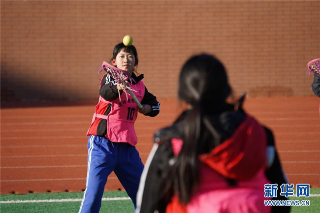 12月1日,在灤平縣第五小學(xué),棍網(wǎng)球隊(duì)員在進(jìn)行訓(xùn)練。新華社發(fā)(王立群 攝)