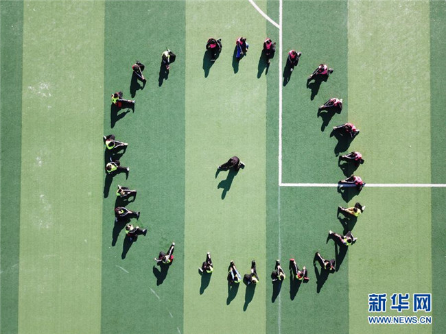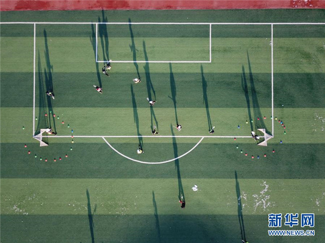 12月1日,在灤平縣第五小學(xué),棍網(wǎng)球隊(duì)員在進(jìn)行訓(xùn)練(無(wú)人機(jī)照片)。新華社發(fā)(王立群 攝)