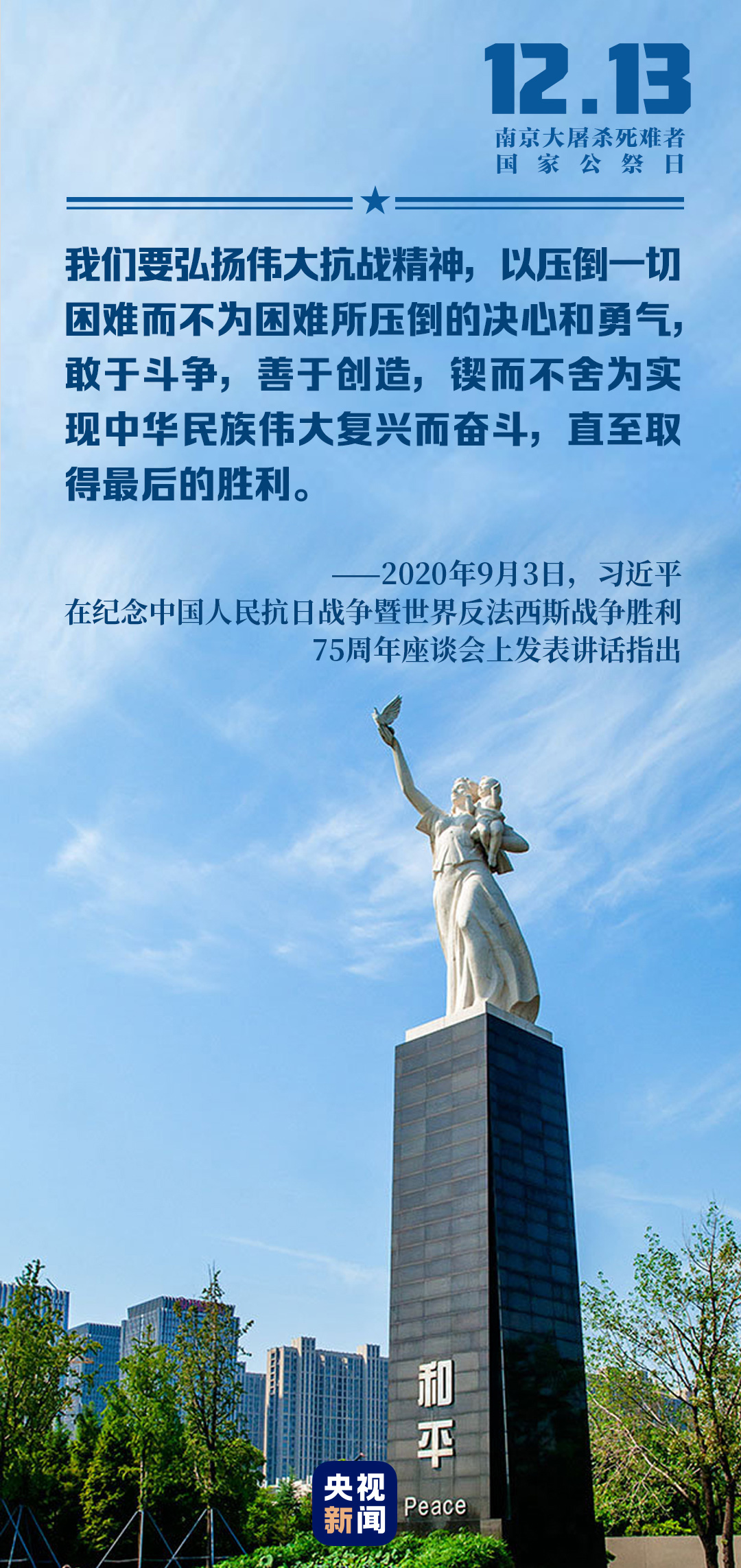 6年來,我們以國家之名祭奠死難者,以尊崇之心珍視和平,以民族之力矢志復(fù)興。