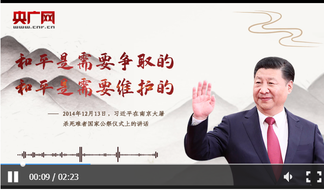 這段話出自2014年12月13日習近平在南京大屠殺死難者國家公祭儀式上的講話。