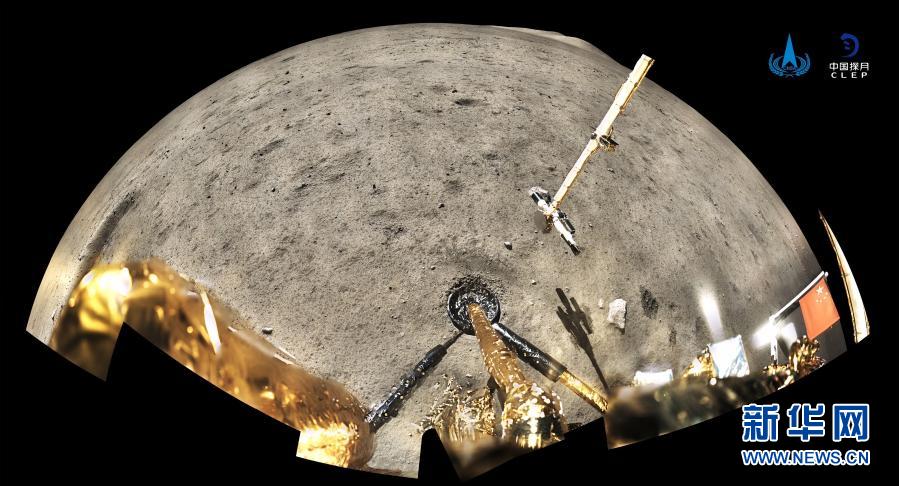 12月4日,國(guó)家航天局公布了探月工程嫦娥五號(hào)探測(cè)器在月球表面國(guó)旗展示的照片。嫦娥五號(hào)著陸器和上升器組合體全景相機(jī)環(huán)拍成像,五星紅旗在月面成功展開,此外圖像上方可見已完成表取采樣的機(jī)械臂及采樣器。新華社發(fā)(國(guó)家航天局供圖)