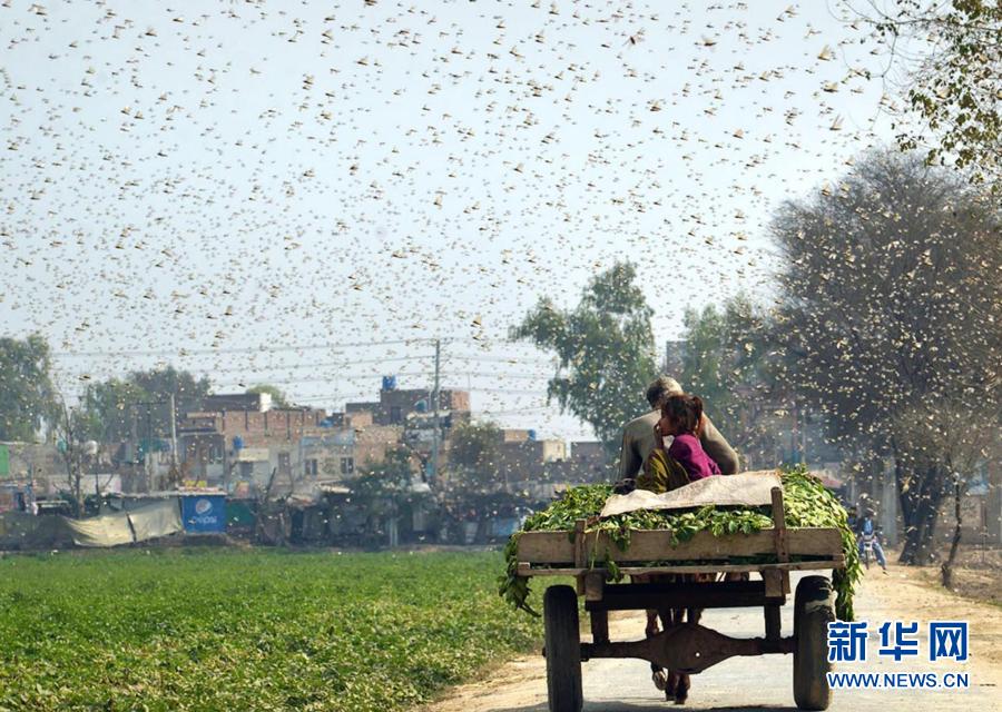 2月15日,在巴基斯坦東部旁遮普省的奧卡拉地區(qū),漫天的蝗蟲(chóng)肆虐(手機(jī)照片)。新華社發(fā)
