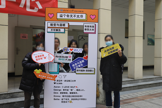 武漢理工大學(xué)學(xué)工部寒衣活動現(xiàn)場受助同學(xué)合影。