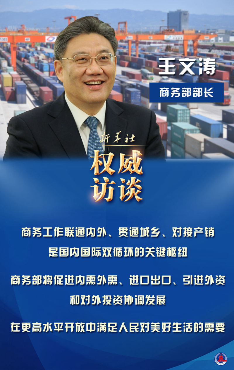新的一年,促消費(fèi)有何新招?如何繼續(xù)穩(wěn)住外貿(mào)外資基本盤?自貿(mào)區(qū)(港)建設(shè)有哪些新動(dòng)作?自貿(mào)“朋友圈”如何構(gòu)建?新華社記者采訪了商務(wù)部部長王文濤。