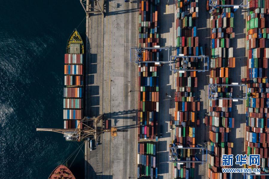 這是2019年9月6日航拍的停靠在希臘比雷埃夫斯港集裝箱碼頭的中遠海運銀河輪。新華社發(fā)(萊夫特里斯·帕察里斯攝)