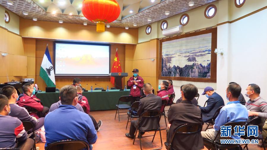 2020年10月3日,中國醫(yī)療專家組成員在萊索托馬塞盧舉辦疫情防控講座。應萊索托政府邀請,中國政府抗疫醫(yī)療專家組一行10人于9月27日至10月7日在萊索托開展抗擊新冠疫情援助工作。新華社發(fā)(中國駐萊索托大使館供圖)