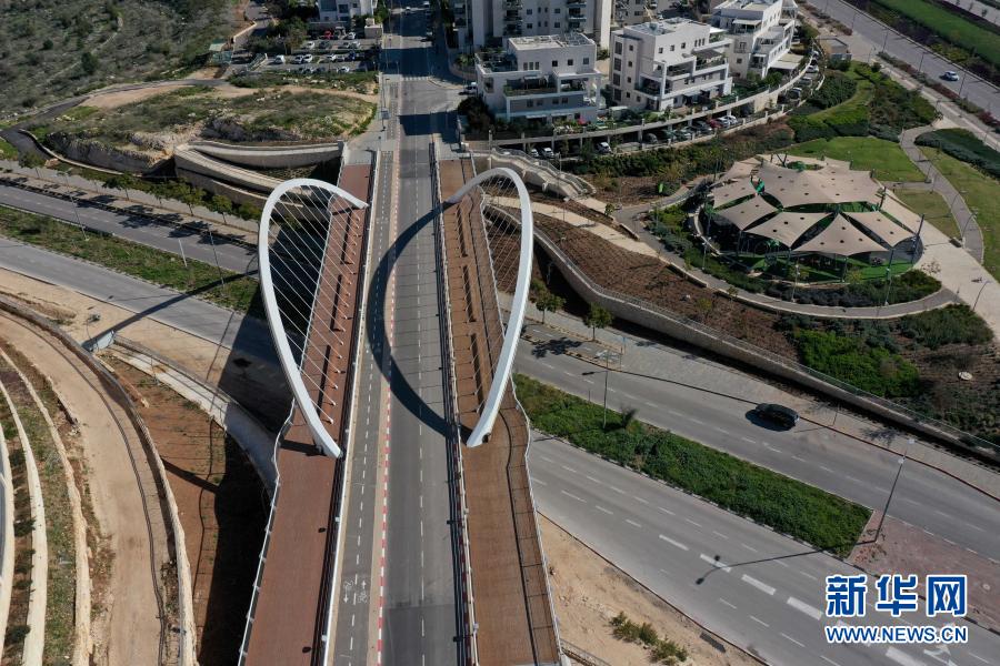 這是2021年1月8日在以色列莫迪因拍攝的全面“封城”期間空蕩的道路(無(wú)人機(jī)照片)。新華社發(fā)(吉爾·科恩·馬根攝)