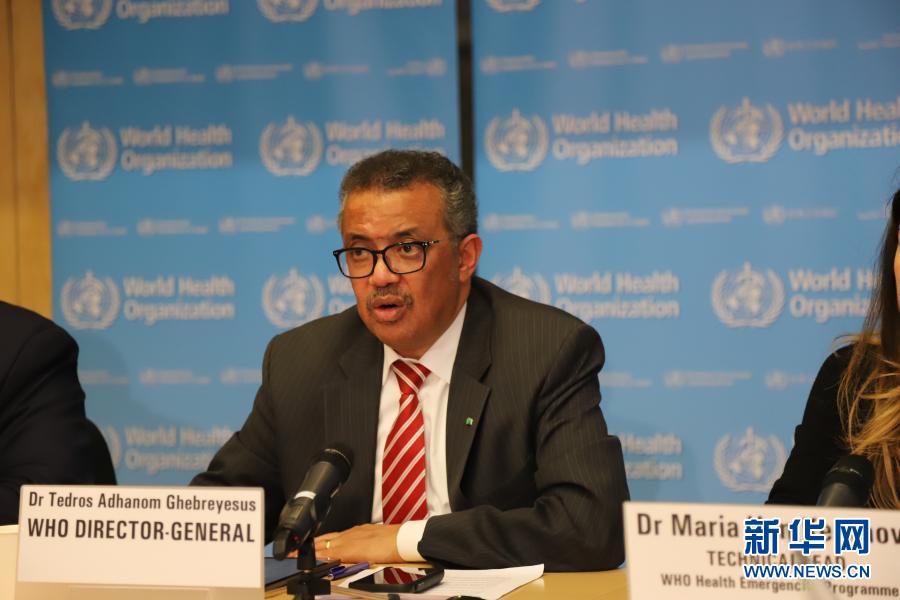 2020年3月11日,在瑞士日內(nèi)瓦,世界衛(wèi)生組織總干事譚德塞在例行記者會(huì)上發(fā)言。譚德塞說(shuō),新冠肺炎疫情從特征上可稱為大流行。新華社記者 陳俊俠 攝