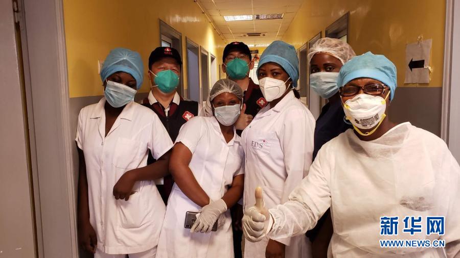 2020年5月26日,中國(guó)抗疫醫(yī)療專家組在剛果(布)首都布拉柴維爾指導(dǎo)新冠肺炎病房建設(shè)時(shí),與當(dāng)?shù)匾痪€醫(yī)務(wù)人員合影。新華社發(fā)