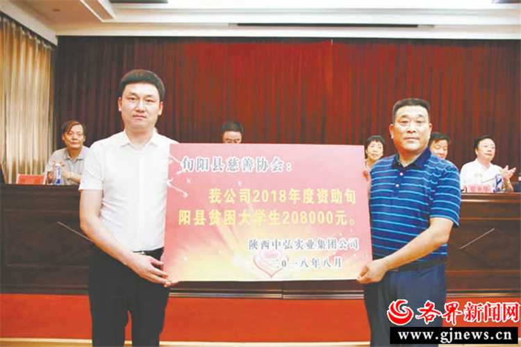 2018年8月,省政協(xié)委員、陜西中弘實(shí)業(yè)集團(tuán)有限公司董事長徐浩向旬陽縣貧困大學(xué)生捐贈善款。