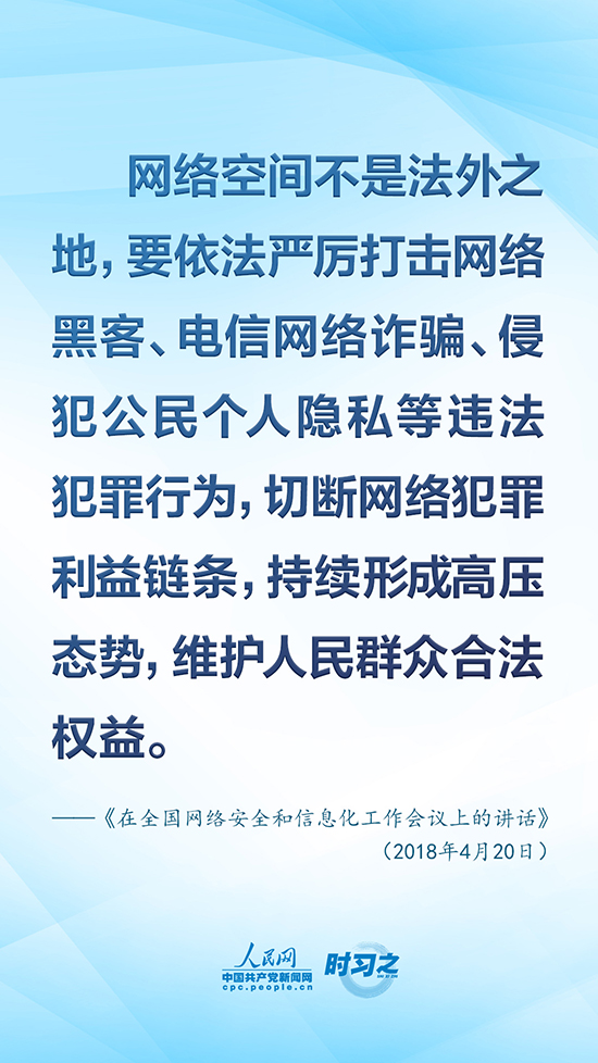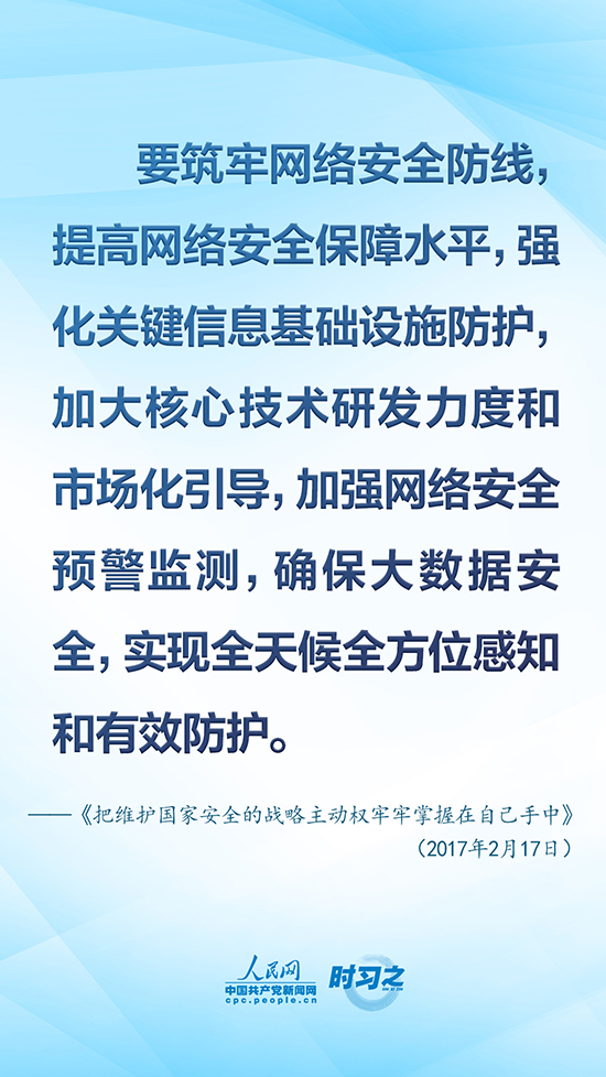 黨的十八大以來,以習(xí)近平同志為核心的黨中央從進行具有許多新的歷史特點的偉大斗爭出發(fā),重視互聯(lián)網(wǎng)、發(fā)展互聯(lián)網(wǎng)、治理互聯(lián)網(wǎng),統(tǒng)籌協(xié)調(diào)涉及政治、經(jīng)濟、文化、社會、軍事等領(lǐng)域網(wǎng)絡(luò)安全和信息化重大問題,作出一系列重大決策、實施一系列重大舉措,推動我國網(wǎng)信事業(yè)取得歷史性成就,走出一條中國特色治網(wǎng)之道。人民網(wǎng)·中國共產(chǎn)黨新聞網(wǎng)“時習(xí)之”欄目擷取了《習(xí)近平關(guān)于網(wǎng)絡(luò)強國論述摘編》中有關(guān)“維護國家網(wǎng)絡(luò)安全”的10句金句,以饗讀者。