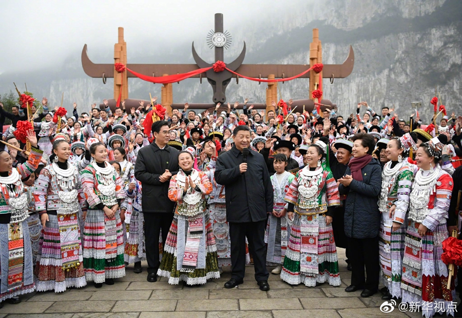 3日下午,正在貴州考察調(diào)研的習近平總書記,來到畢節(jié)市黔西縣新仁苗族鄉(xiāng)化屋村看望鄉(xiāng)親們,送上新春祝福。在苗族村民趙玉學家,習近平同一家人圍坐客廳,邊聊家常邊制作當?shù)貍鹘y(tǒng)節(jié)日食品黃粑??倳浻H手用粽葉裹著糯米、黃豆面包好一個黃粑,微笑著對趙玉學一家說:“祝你們今后的日子過得更加幸福、更加甜美!”(文字記者:張曉松 朱基釵;攝影記者:李學仁 謝環(huán)馳 丁海濤)