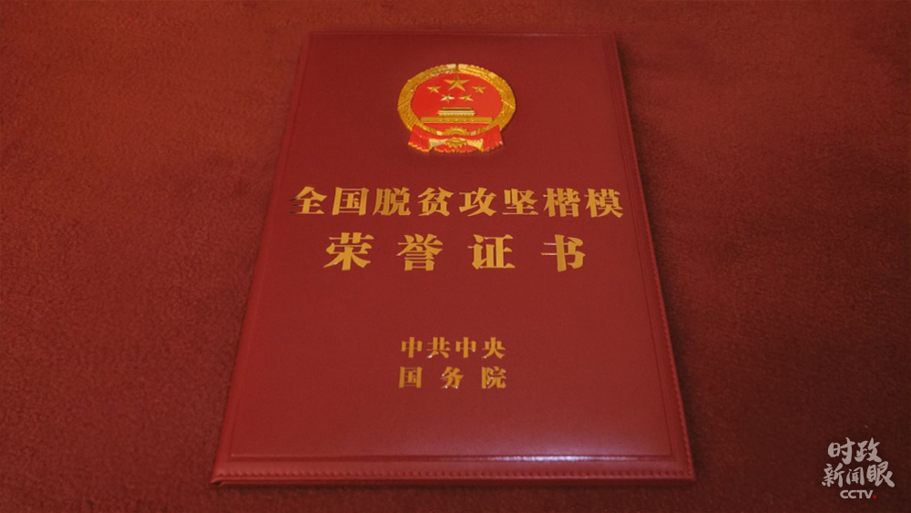 △“全國脫貧攻堅楷模”榮譽稱號獎章與證書(總臺央視記者彭漢明拍攝)