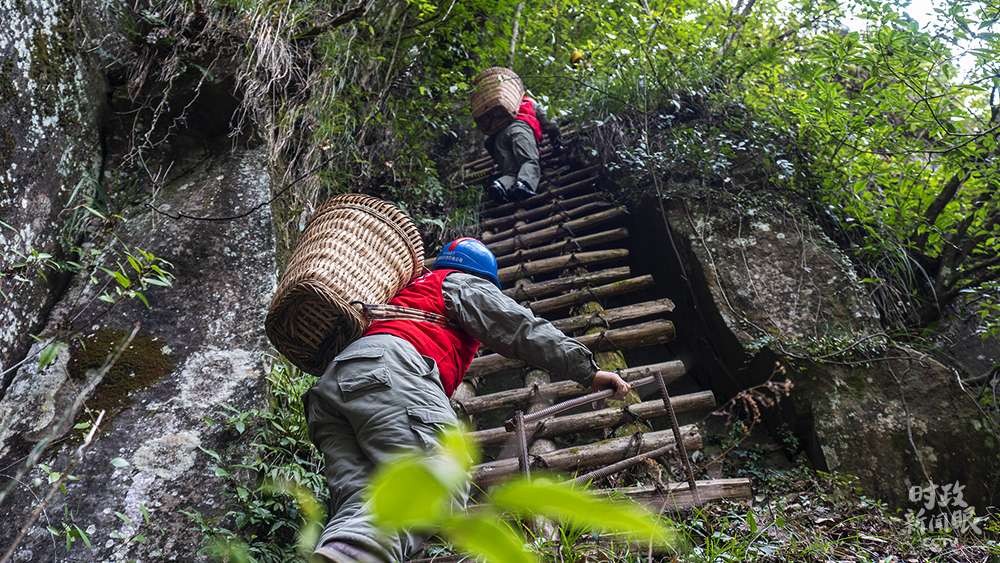 △2月8日,湖北利川市“背簍電工”黨員服務(wù)隊(duì)翻越中坪村“手扒崖”路段,排查當(dāng)?shù)赜秒娫O(shè)備隱患。