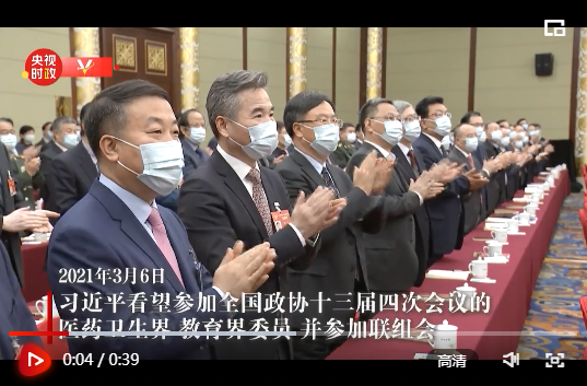 6日下午,中共中央總書記、國家主席、中央軍委主席習(xí)近平看望參加全國政協(xié)十三屆四次會議的醫(yī)藥衛(wèi)生界、教育界委員,并參加聯(lián)組會,聽取意見和建議。