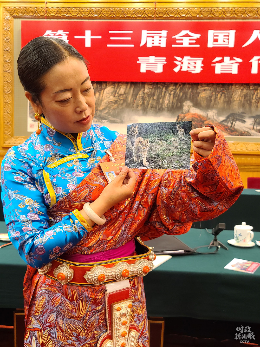 孔慶菊是一名從小生長在祁連山腳下的人民教師,她在發(fā)言時(shí)談起這些年祁連山生態(tài)之變。孔慶菊特意帶了幾張照片上會(huì)。她說,以前偶爾能見到的雪豹和荒漠貓,現(xiàn)在已經(jīng)頻繁出現(xiàn)。“生態(tài)管護(hù)更嚴(yán)了,綠水青山回歸了。”
