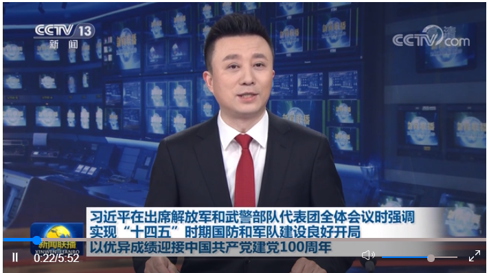 新華社北京3月9日電(記者李宣良、梅世雄)中共中央總書記、國(guó)家主席、中央軍委主席習(xí)近平9日下午在出席十三屆全國(guó)人大四次會(huì)議解放軍和武警部隊(duì)代表團(tuán)全體會(huì)議時(shí)強(qiáng)調(diào),今年是中國(guó)共產(chǎn)黨建黨100周年,是“十四五”開局、全面建設(shè)社會(huì)主義現(xiàn)代化國(guó)家新征程開啟之年,也是國(guó)防和軍隊(duì)現(xiàn)代化新“三步走”起步之年。全軍要強(qiáng)化責(zé)任擔(dān)當(dāng)、弘揚(yáng)實(shí)干精神,抓好常態(tài)化疫情防控,扎實(shí)做好各項(xiàng)工作,確保實(shí)現(xiàn)“十四五”良好開局,以優(yōu)異成績(jī)迎接建黨100周年。