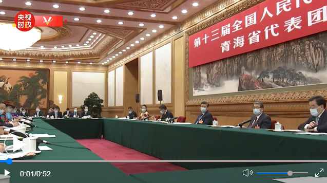 ↑ 3月7日,中共中央總書記、國家主席、中央軍委主席習近平參加十三屆全國人大四次會議青海代表團的審議。新華社記者李學(xué)仁攝