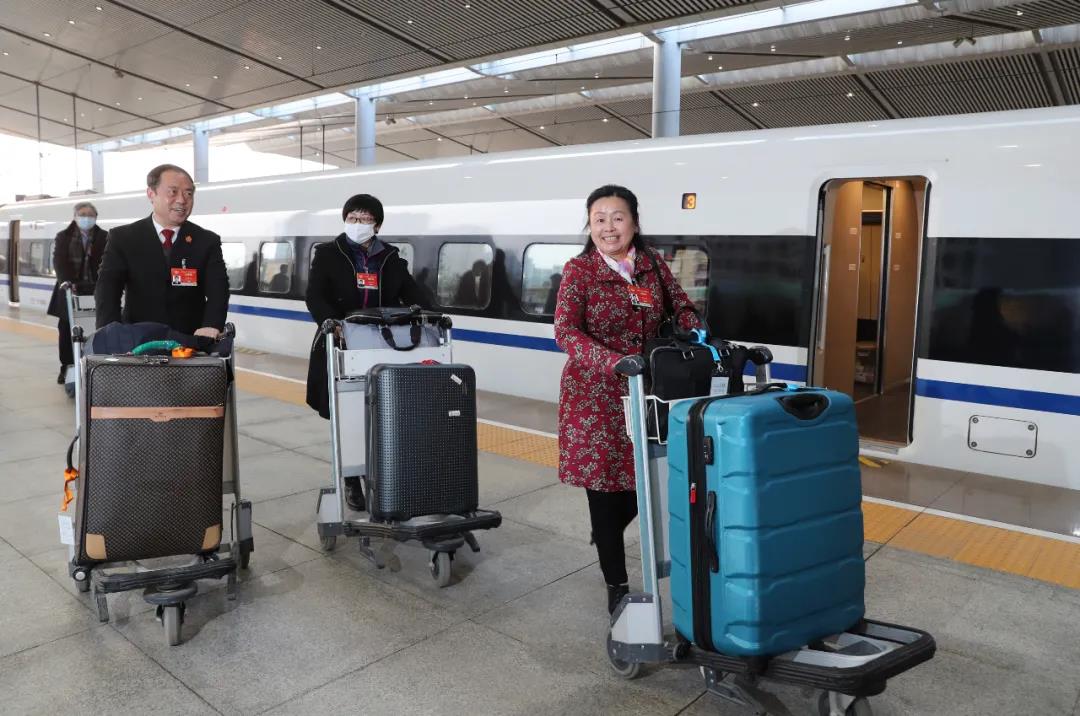 3月11日晚,出席全國政協(xié)十三屆四次會(huì)議的住陜?nèi)珖f(xié)委員,從北京乘坐高鐵回到西安。