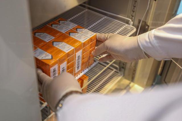 醫(yī)護(hù)人員從移動(dòng)疫苗接種車(chē)上的冷藏箱內(nèi)取出新冠疫苗。新華社記者張玉薇 攝