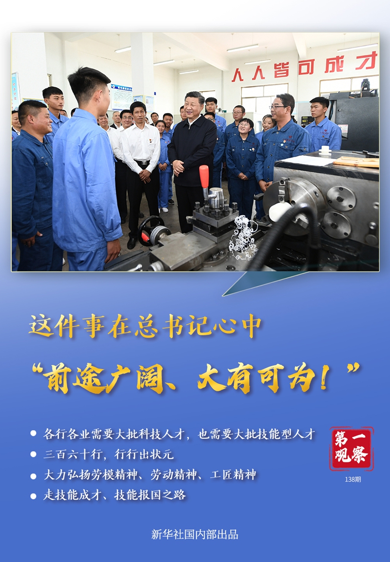 “要樹立正確人才觀”。習近平總書記反復強調(diào)培養(yǎng)技術(shù)技能人才的重要性,還多次走到老師和同學們中間,為大家加油打氣。