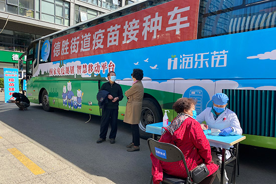 “很多人反映,兩個(gè)固定的接種點(diǎn)離社區(qū)太遠(yuǎn),老人們不方便。”劉宏宇說(shuō)。家住德勝街道新康社區(qū)的楊秀花就是其中一位。楊阿姨今年70歲,家里人都接種了疫苗,她也不想掉隊(duì)。可是一想到自己心房顫動(dòng)的老毛病,她又犯了愁。