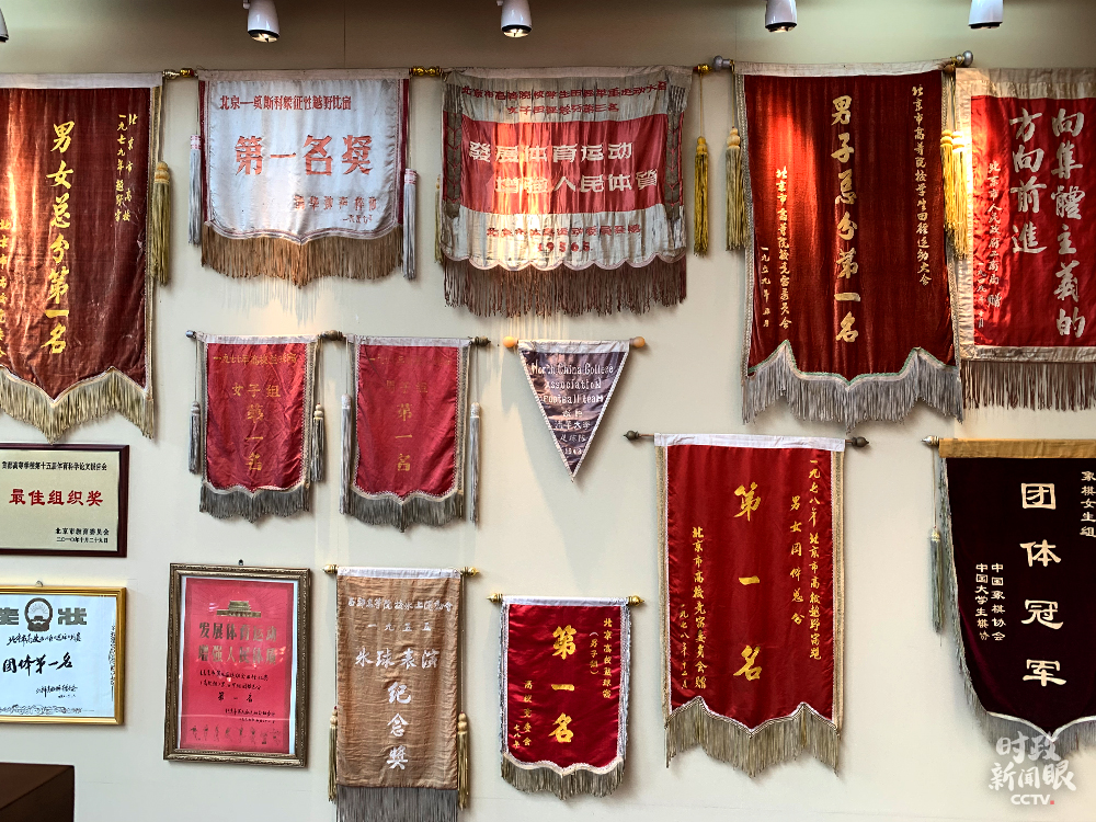 △陳列在體育榮譽(yù)室的錦旗(總臺(tái)央視記者石偉明拍攝)