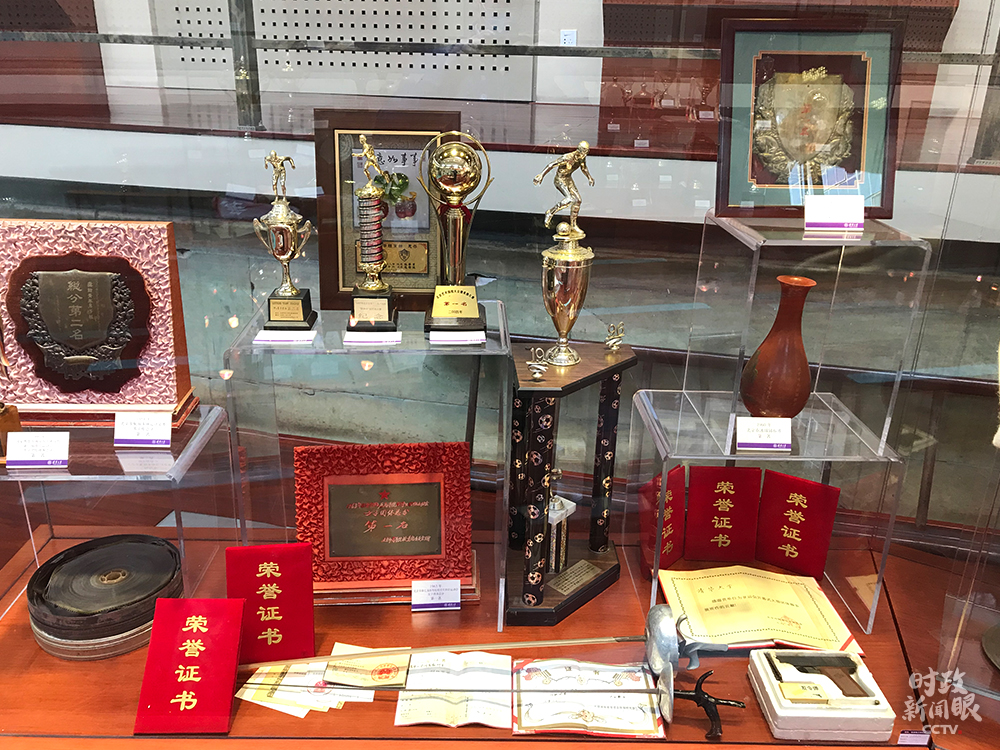 △陳列在體育榮譽(yù)室的獎(jiǎng)杯、證書(shū)(總臺(tái)央視記者許達(dá)拍攝)