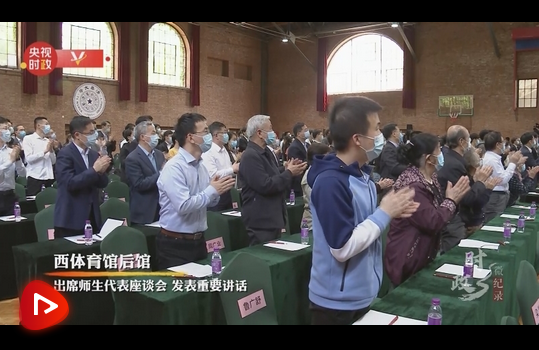 在西體育館后館,習(xí)近平總書記出席師生代表座談會(huì),發(fā)表重要講話。他強(qiáng)調(diào)堅(jiān)持中國(guó)特色世界一流大學(xué)建設(shè)目標(biāo)方向,為服務(wù)國(guó)家富強(qiáng)、民族復(fù)興、人民幸福貢獻(xiàn)力量。