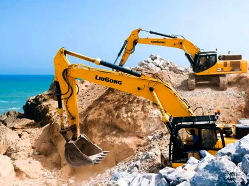 △2017年,摩洛哥首都拉巴特,大西洋海岸施工現(xiàn)場(chǎng),柳工挖掘機(jī)進(jìn)行大塊石料的堆積作業(yè)。(資料圖)