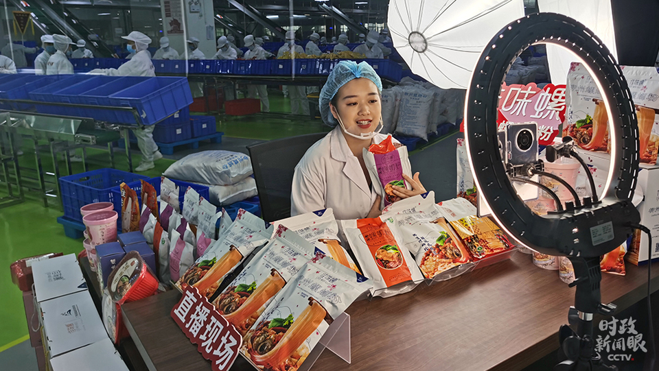 △袋裝螺螄粉直播帶貨現(xiàn)場(chǎng)(總臺(tái)央視記者許永松拍攝)
