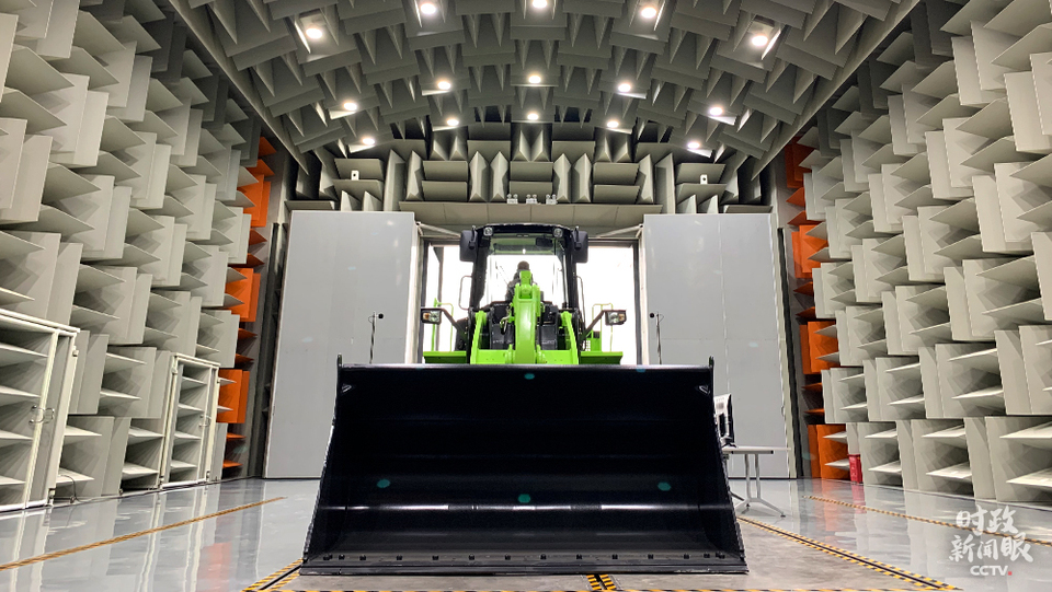 △研發(fā)中心的半消聲實(shí)驗(yàn)室正在為一款純電動(dòng)裝載機(jī)檢測(cè)噪聲數(shù)據(jù)。(總臺(tái)央視記者程鋮、張曉鵬拍攝)
