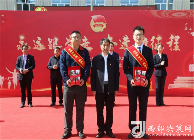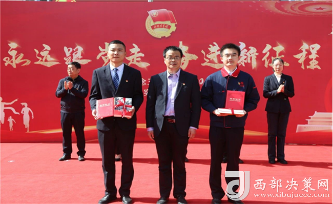 集團(tuán)公司副總裁楊會(huì)軍為寶雞市青年突擊手牛力,優(yōu)秀共青團(tuán)干部趙騰頒獎(jiǎng)
