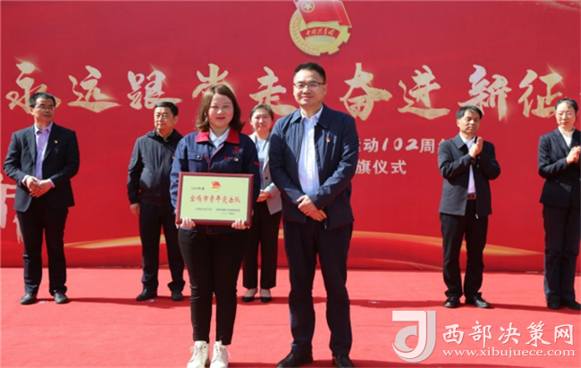 西部決策網(wǎng)訊(韓宗憲)4月29日,西鳳集團(tuán)公司團(tuán)委在辦公樓前廣場(chǎng)舉行了“永遠(yuǎn)跟黨走 奮進(jìn)新征程”紀(jì)念五四運(yùn)動(dòng)102周年暨青年突擊隊(duì)授旗儀式。共青團(tuán)寶雞市委書記高婷,西鳳集團(tuán)公司黨委副書記、總裁楊宏亮,黨委委員、股份公司副董事長(zhǎng)、總經(jīng)理賈智勇,黨委副書記郭拴新,黨委委員、副總裁楊會(huì)軍,紀(jì)委書記、監(jiān)察專員帖樹紅,以及公司相關(guān)職能部門負(fù)責(zé)人,共青團(tuán)工作支持者,共青團(tuán)干部和團(tuán)員青年代表共200多人參加了儀式,集團(tuán)公司工會(huì)主席陳軍紅主持儀式。